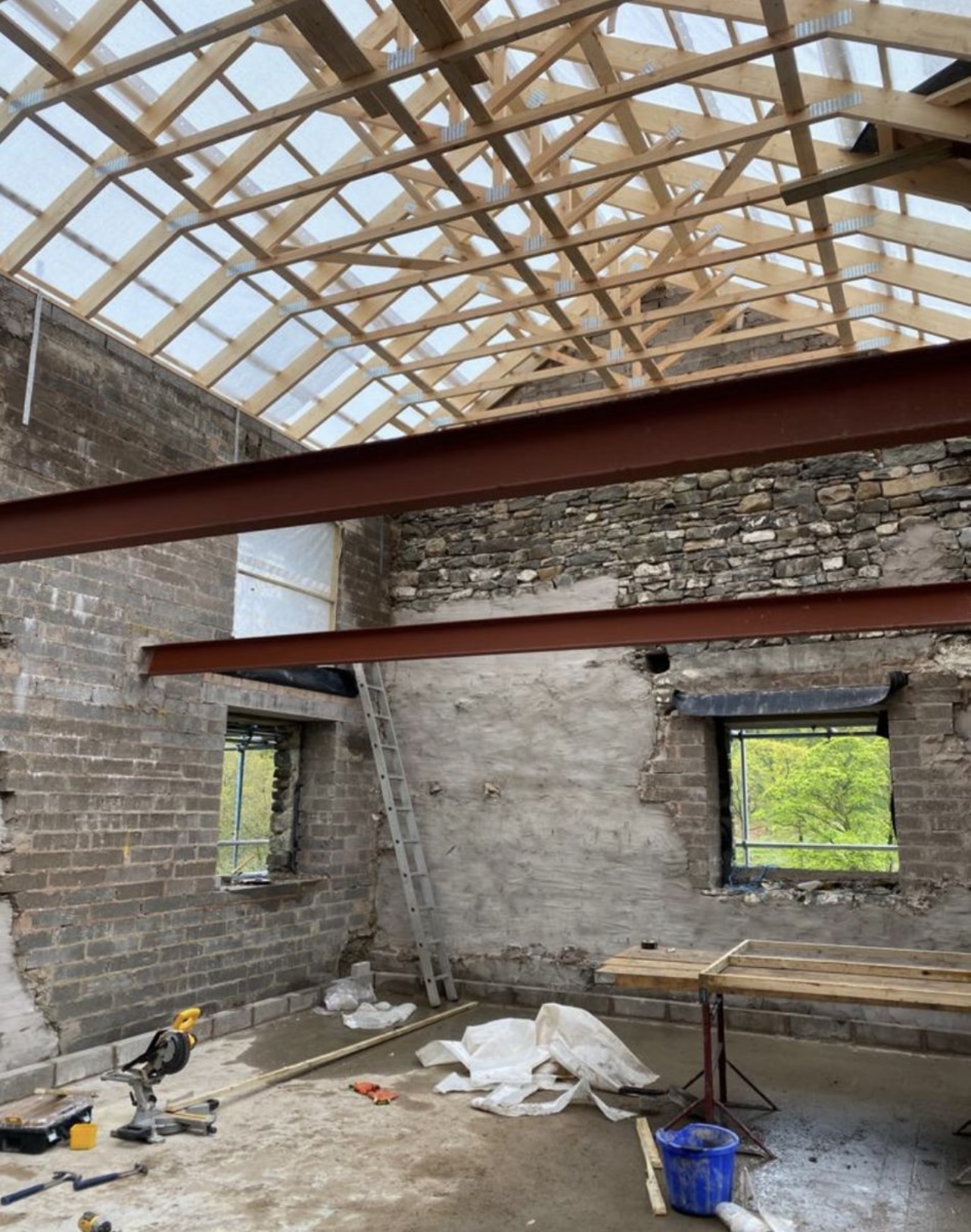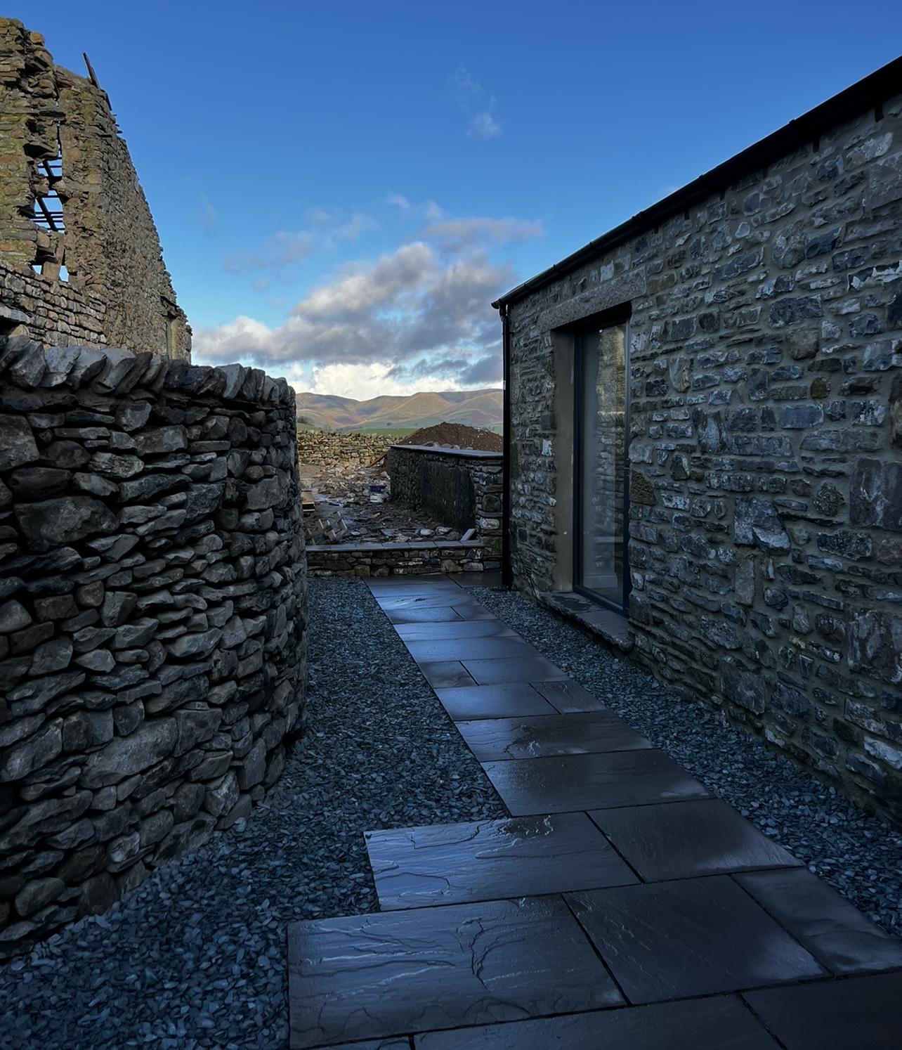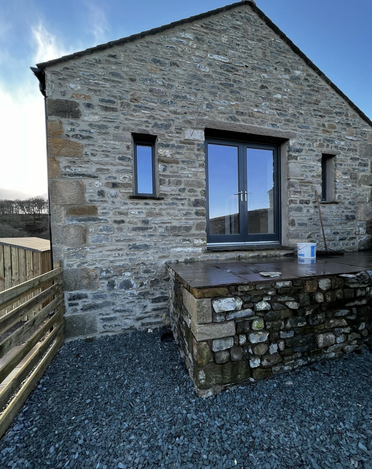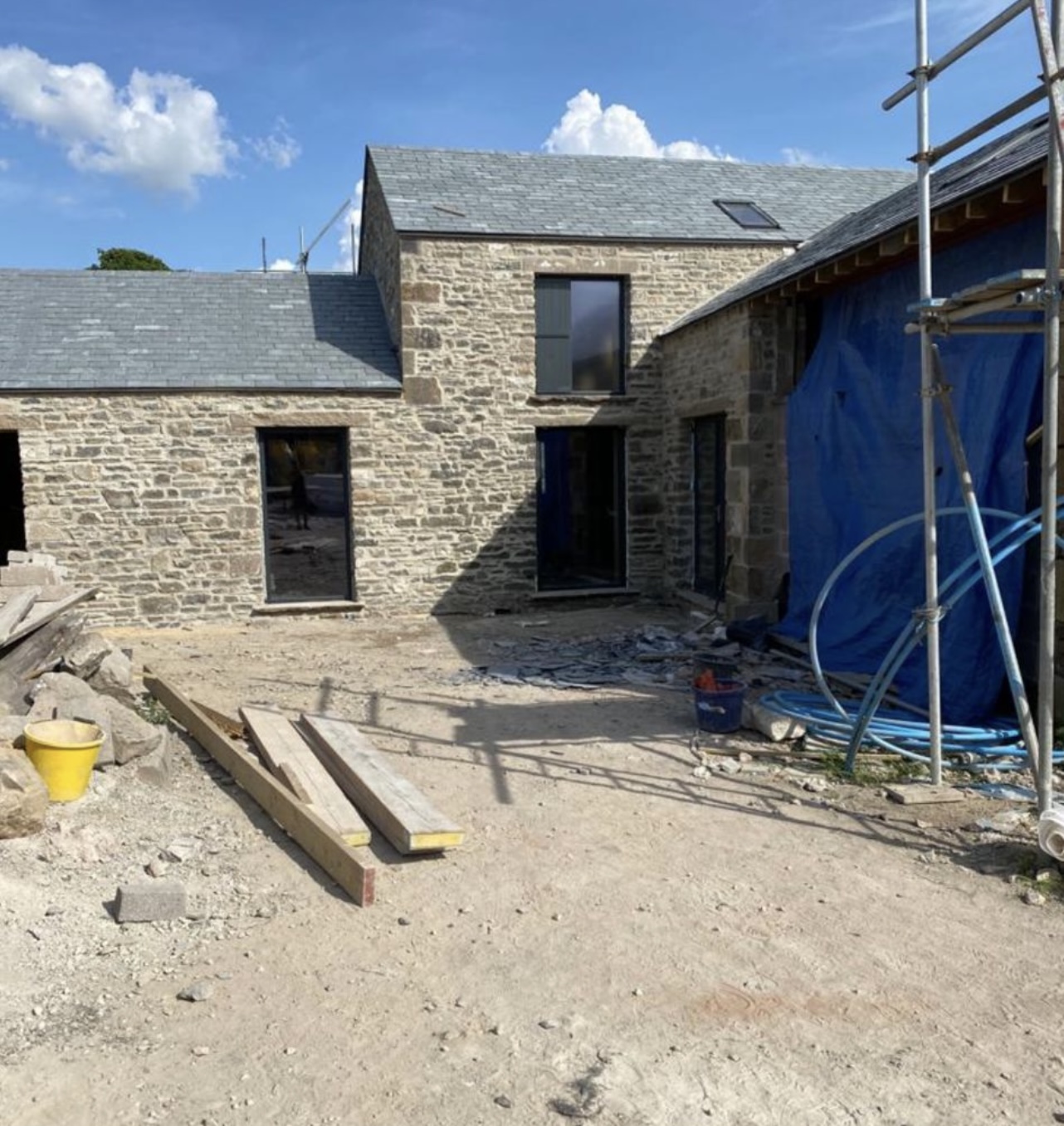Initially 2 very large detached barns purchased, one grade 2 listed, planning obtained to change the largest barns from 1 barn in to 2 barns & then planning obtained for a new build annex attached to one of the barns which now has separate planning for a local occupancy new build. Development started in 2010 and all finished now.